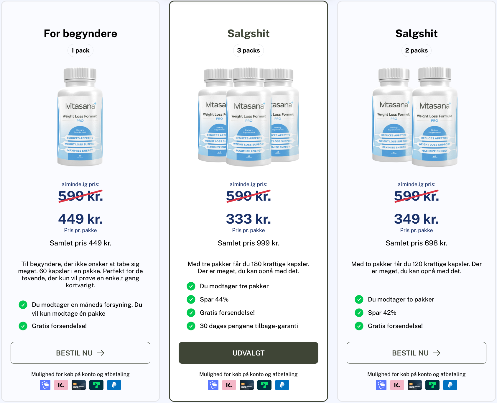 Ivitasana Danmark er et kosttilskud til vægttab, der vinder opmærksomhed på markedet under produktnavnet "Weight Loss Formula Pro". Det er designet til at støtte personer, der ønsker at reducere fedtophobning, undertrykke appetitten og øge energiniveauet, og supplerer dermed en kaloriebegrænset diæt og moderat motion. Denne artikel udforsker Ivitasanas formulering, hvordan den virker, dens ingredienser, fordele, brugstips, priser og hvor den kan købes, og præsenterer en omfattende oversigt for dem, der er interesserede i naturlige vægtkontrolmuligheder.